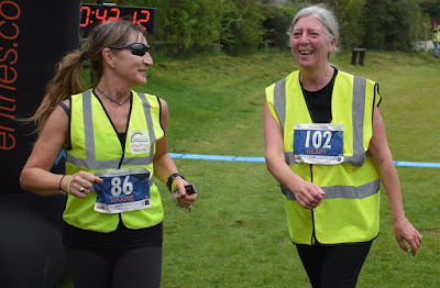 After the Big Lock the runners headed for Middlewich Cricket Club via Croxton Park and Croxton Lane, then at the cricket club the run finished with two circuits of the grounds. Maxine and Hilary were not the first to finish but they were not the last either, finishing 16th & 17th in their class with a matched time of 42 minutes and 10 seconds.