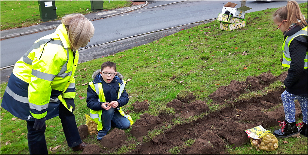 On Sunday 25th October, we were well supported for our Annual Community Bulb Planting which is just as well as we had hundreds of bulbs to plant at the bottom of Brynlow Drive and our hope that ‘Many hands would make light work’ became a reality.